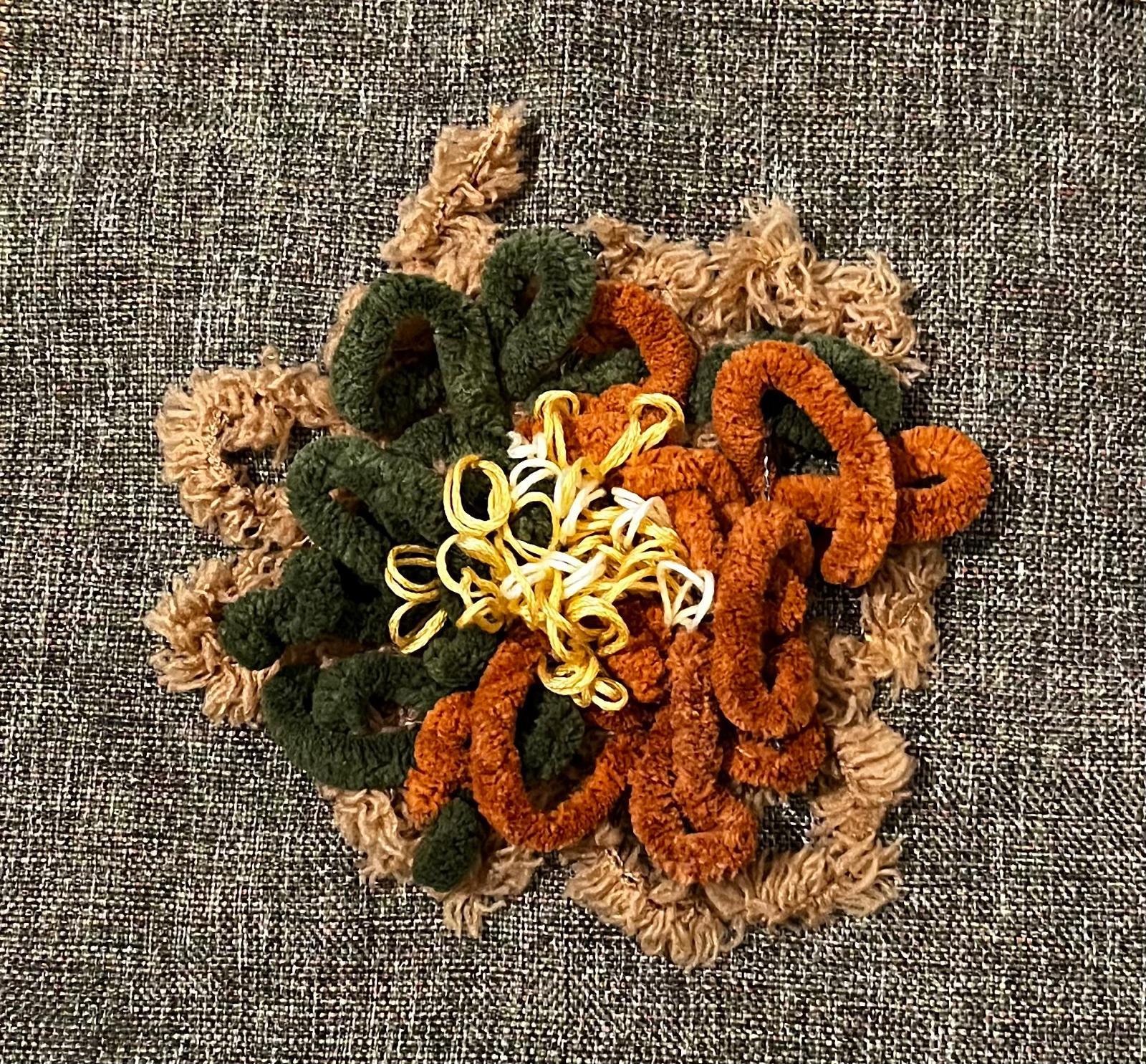 Inspired by the Remaykit fashion show in June, Jennie signed up for this workshop at the Natural History Museum. The aim of the workshop was to discuss easy upcycling ideas and look at how fashion can help us care for the planet. What you wear can be a form of climate action. The finished item resembles a tactile piece of moss. It was not quite what we were expecting but it was great to enjoy the Museum after closing.