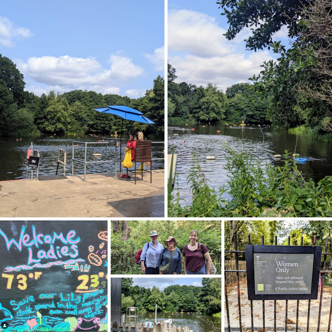 It is the season to be swimming; we have all been to the Tooting Bec Lido regularly over the last couple of months. On a fine sunny morning in July, three of us visited the Kenwood Ladies’s Pond on Hampstead Heath. The water was so warm, and incredibly soft to swim in, it was a really lovely morning, and surprisingly not too busy. After a walk back across the Heath we stopped off in Hampstead for a bite of lunch before the train home. The perfect outing for a summer day.
